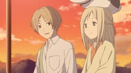 Takashi, Nishimura i Kitamoto wracają ze szkoły, kiedy nagle zaczyna padać. Chłopcy chowają się pod drzewami. Nagle, Natsume spada na głowę zielony ręcznik. Zza krzaków wychyla się dziewczynka, która chce, by chłopak go oddał. Satoru odchodzą z Natsume w stronę Atsushi'ego, a dziewczynka youkai wychodzi z krzaków.